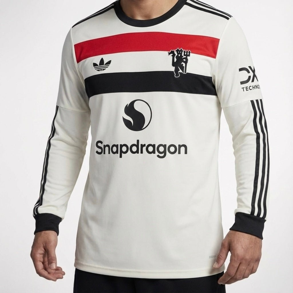 חולצת משחק רשמית מנצ׳סטר יונייטד שלישית 24/25 שרוול ארוך נותן לך דרך ברורה להראות את האהבה למנצ׳סטר יונייטד. החולצה מתאימה למי שרוצה לשדר סטייל של מנצ׳סטר יונייטד בכל יום.